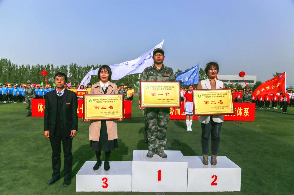 在两天共27个项目比赛中,全体运动健儿们拼搏进取、奋勇争先、顽强拼搏;全体裁判员秉公执裁、坚守岗位、恪尽职守;全体志愿者热情服务、无私奉献,保证了运动会的顺利进行。经过激烈角逐,士官学院获得团体总分第一名,机械工程学院获得团体总分第二名,电子工程学院获得团体总分第三名;士官学院、机械工程学院获得排舞展演“最佳表现奖”;电子工程学院获得运动会精神文明奖。