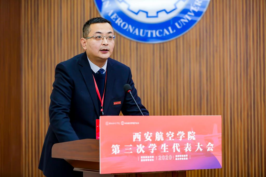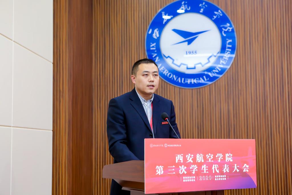 校团委书记雷颖颐致开幕词,她充分肯定了第二次学代会以来学生会所取得的成绩。她指出,今年是学校发展极不平凡的一年。在学校党委的坚强领导下,全体师生以“只争朝夕,奋发进取”的精神状态,迎接了教育部本科教学合格评估。在全校上下以高昂饱满的热情,谋划学校第十四个五年的发展蓝图之际,第三次学生代表大会召开具有非常重要的意义。新一届学生会应高举习近平新时代中国特色社会主义思想伟大旗帜,团结带领全校学生,充分发扬“航空报国、立德树人、激情进取、志在超越”的西航精神,树立航空报国之志,以良好的精神风貌共同唱响新时代的青春之歌。