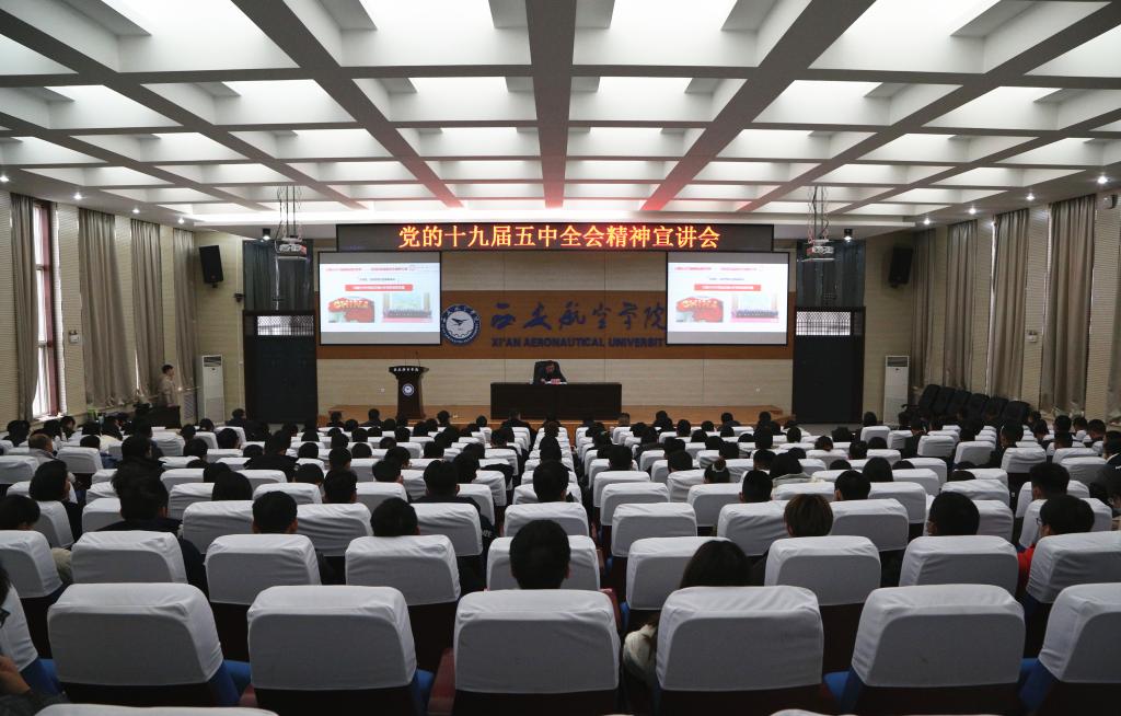 12月16日,党委书记陈平社为阎良校区师生做党的十九届五中全会精神宣讲报告。阎良校区各二级学院党总支书记、党支部书记、全体辅导员、教师及学生代表、职能处室工作人员200余人参加会议。会议由党委副书记韩明军主持。