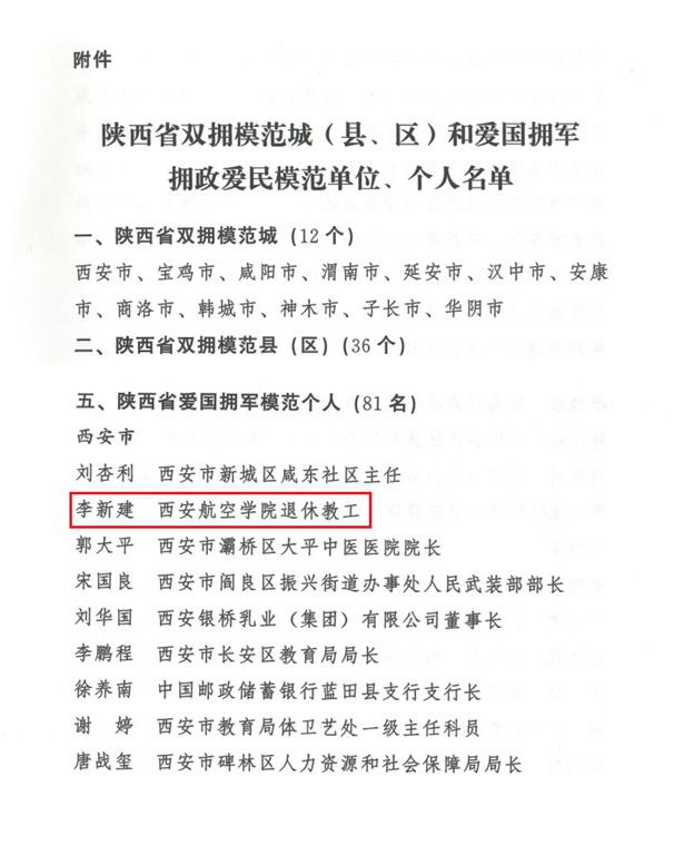 12月4日,我省召开陕西省双拥模范单位和个人表彰大会。beat365退休职工李新建同志荣获“陕西省爱国拥军模范个人”荣誉称号,这是自2019年李新建同志荣获“全国模范退役军人”称号、“陕西高教系统岗位学雷锋标兵”荣誉称号后的第三次殊荣。