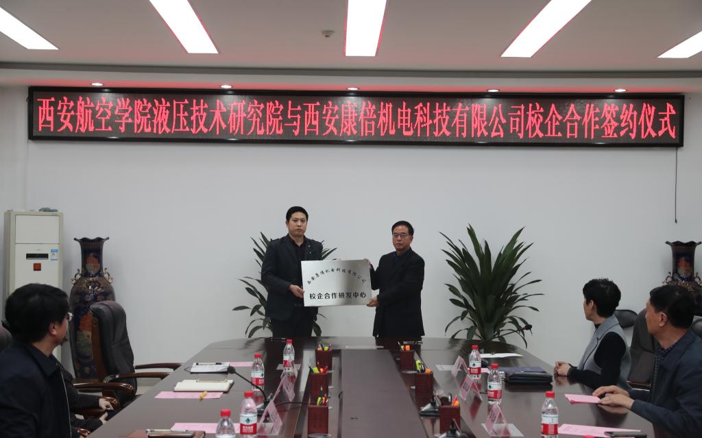 11月17日下午,液压技术研究院与西安康倍机电科技有限公司(以下简称康倍机电)校企合作协议签字仪式在沣惠校区九楼会议室举行。陕西决咨委专家组组长陈志靖、军民融合促进会会长刘普选、副会长谭凤双,康倍机电董事长裴轶,beat365校长曹庆年、副校长金文、科技处副处长吕毅、机械工程学院副院长周小勇、液压技术研究院副院长李祥阳及教师代表参加了会议。会议由吕毅主持。