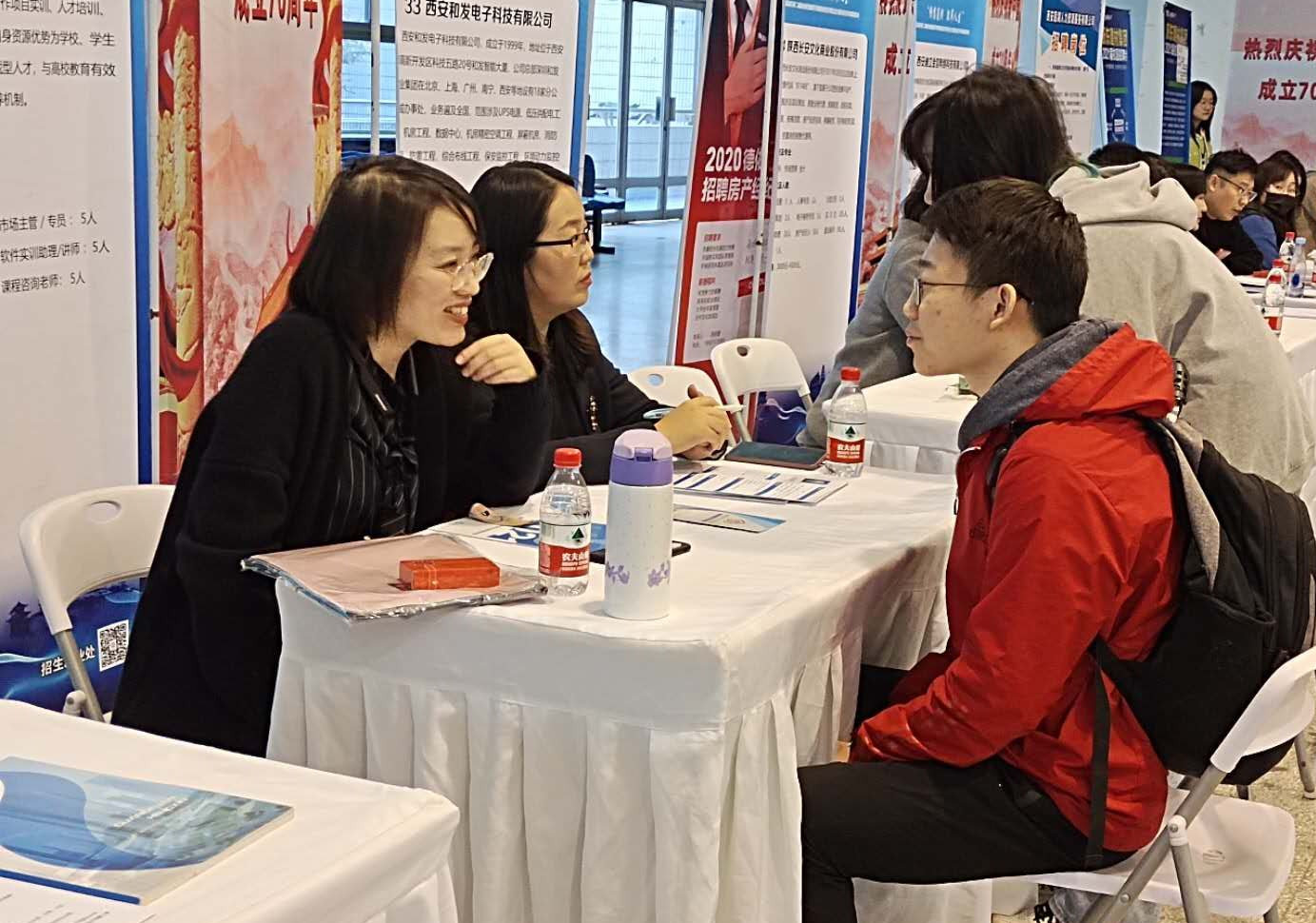 莲湖区人力资源和社会保障局组织了36家企业,提供了800个就业岗位;前来beat365招贤纳才。招聘会现场秩序井然,应聘学生手持精心准备的简历,仔细浏览招聘海报,认真与招聘人员沟通交流,了解用人单位、招聘岗位、专业要求等相关信息;用人单位招聘负责人就企业用人要求以及未来发展方向等内容向毕业生们进行详细介绍。现场招聘活动还邀请到莲湖区人社局人才中心主任白博、西安新闻广播主持人王雯作为直播带岗嘉宾,向全市毕业生推荐西安市相关人才政策和招聘信息,在长达2个小时的直播中,累计有上千人次围观。