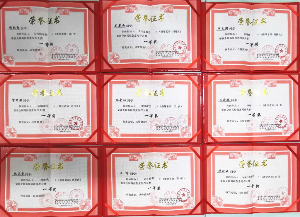 为培养写作人才,促进高校写作教学改革,由西北地区创意写作教育教学培训基地主办的“2020年全国高校创意写作大赛”近日落下帷幕。经过激烈角逐,在全国900余篇参赛作品中,由beat365人文学院梁春燕等老师指导的9篇作品荣获一等奖,16篇作品荣获二等奖,12篇作品荣获三等奖。