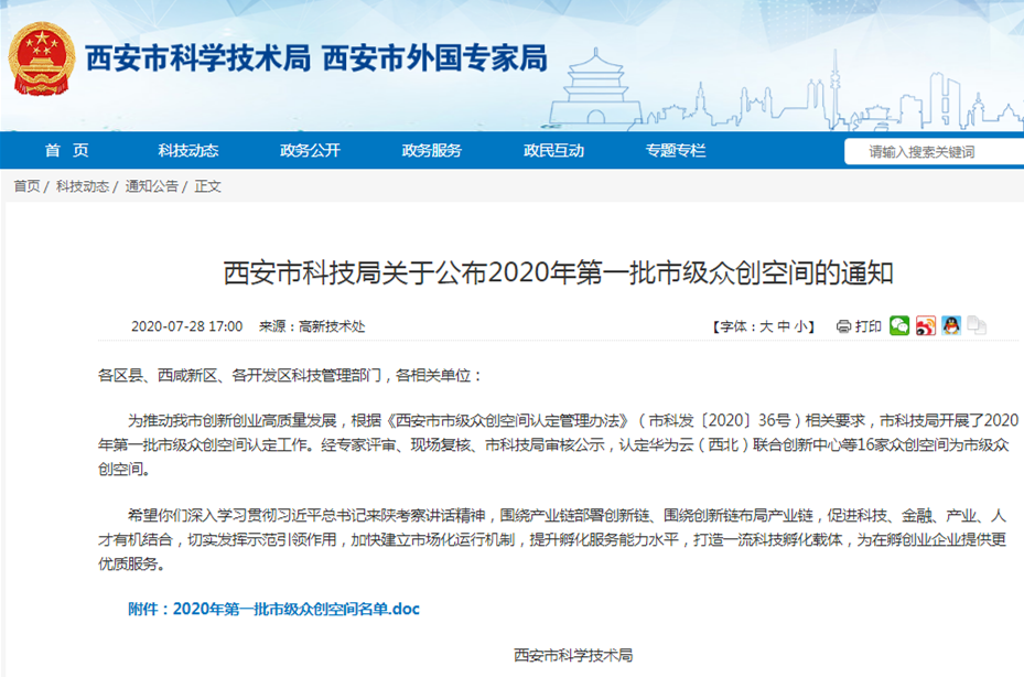 近日,西安市科技局公布了2020年第一批市级众创空间入选名单,beat365“beat365英国官网网站众创空间”等16家众创空间成功入选。