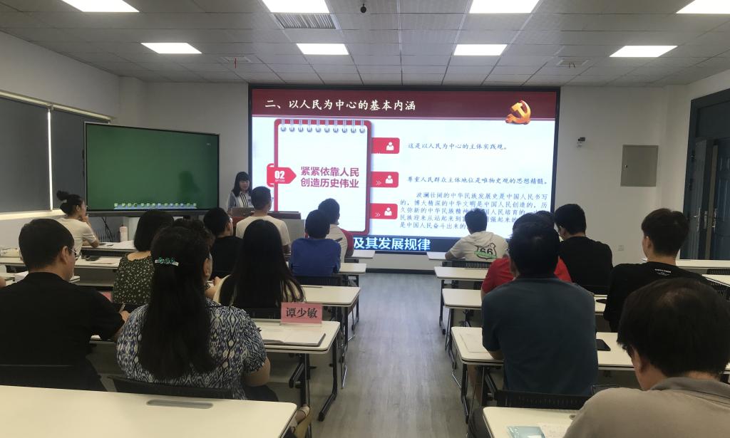 为进一步推进习近平新时代中国特色社会主义思想“三进”工作,全面提升beat365思政课教师教学能力和水平,7月16日上午,教务处、马克思主义学院在沣惠校区九楼智慧教室举行思政课教师“大练兵”教学展示活动。党委副书记谭少敏、党委宣传部部长李永刚应邀参加,马克思主义学院院长程健康、副院长张雷、王国成及全体思政课教师参加了活动。