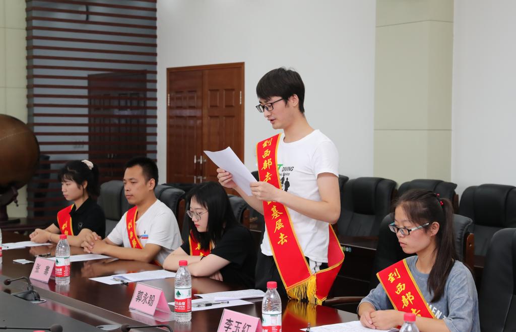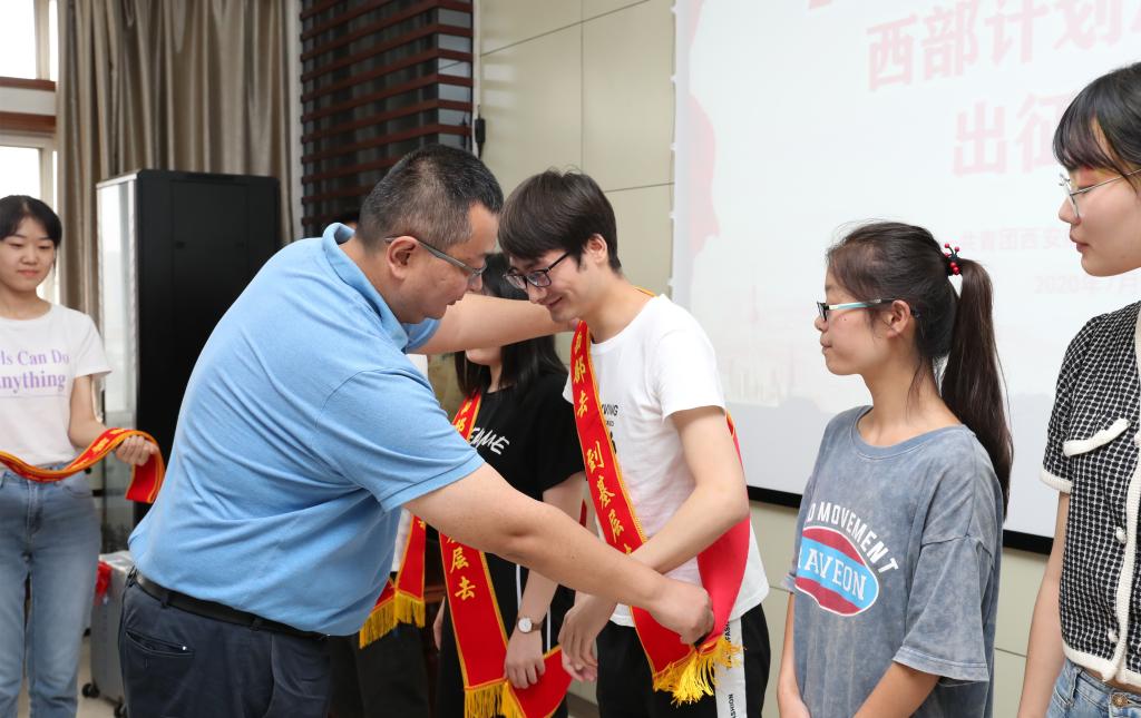 7月16日上午,beat3652020年大学生志愿服务西部计划出征仪式在沣惠校区教学楼九楼会议室举行。校党委副书记刘谦、党委组织部、招生就业处、学生工作部(处)、校团委等部门负责人及beat365即将赴西部进行志愿服务工作的7名毕业生参加了出征仪式。出征仪式由校团委书记雷颖颐主持。