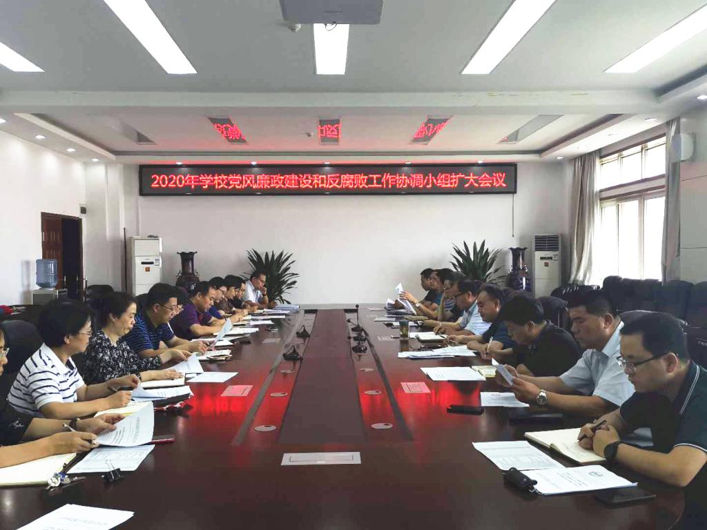 7月15日下午,学校在沣惠校区9楼会议室召开2020年党风廉政建设和反腐败工作协调小组扩大会议。校党委副书记、纪委书记、省监委驻学校监察专员王建斌主持会议并讲话。协调小组成员及有关部门负责人参加了会议。