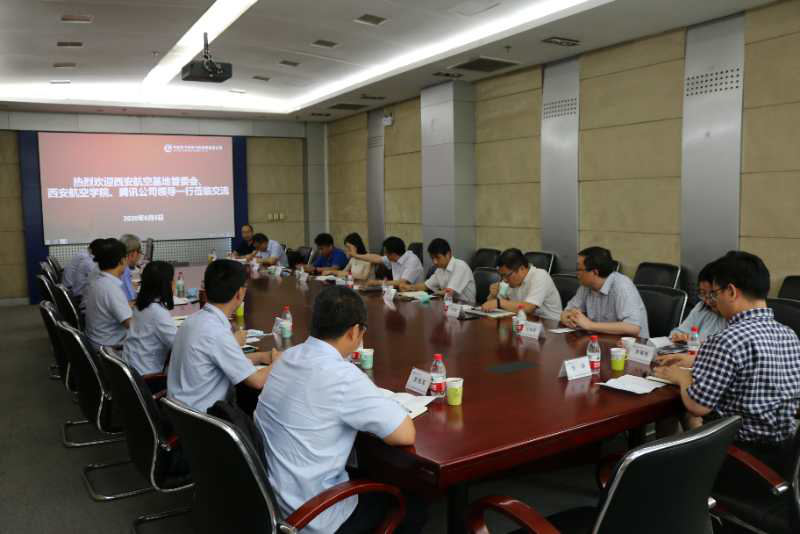 6月5日下午,副校长金文、科技处副处长吕毅赴中航西飞民用飞机有限责任公司进行调研交流。中航西飞民用飞机有限责任公司总经理王程宽、西安航空基地管委会书记姚涌、科技创新局局长王仑、军民融合局副局长于贵新、腾讯公司西北地区负责人参加了会议。