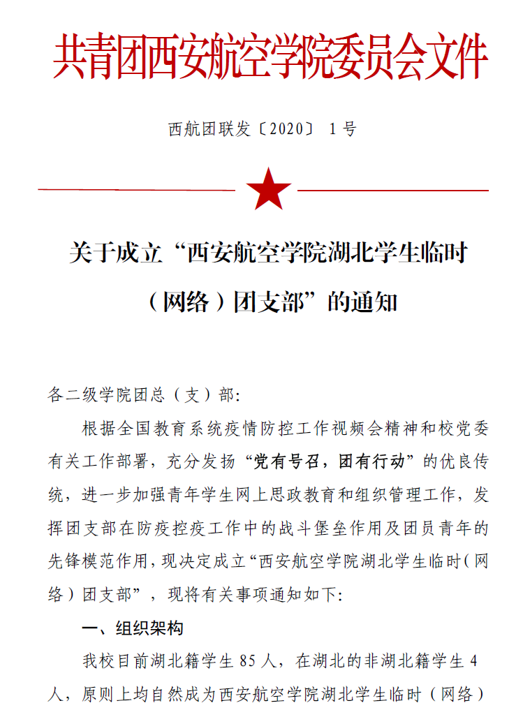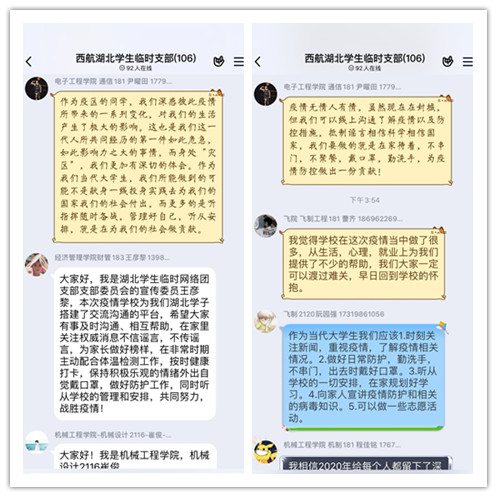 为切实做好新冠肺炎疫情防控,认真贯彻落实学校党政部署安排,有效实现地对湖北团员青年进行凝聚引领和组织管理全覆盖,校团委联合学生工作部(处)、招生就业处在学校党委指导下成立了“beat365英国官网网站湖北学生临时(网络)团支部”,教育动员团员青年正确认识防控形势,坚定抗疫信心,帮助湖北学生解决学业、生活、心理、就业等方面的实际困难。