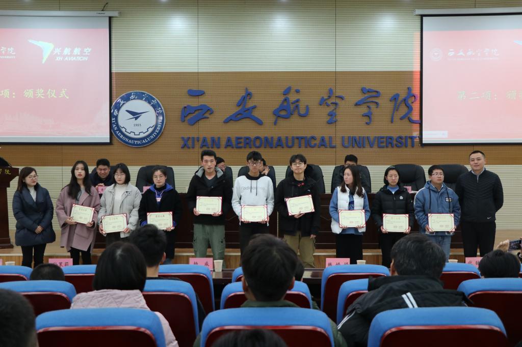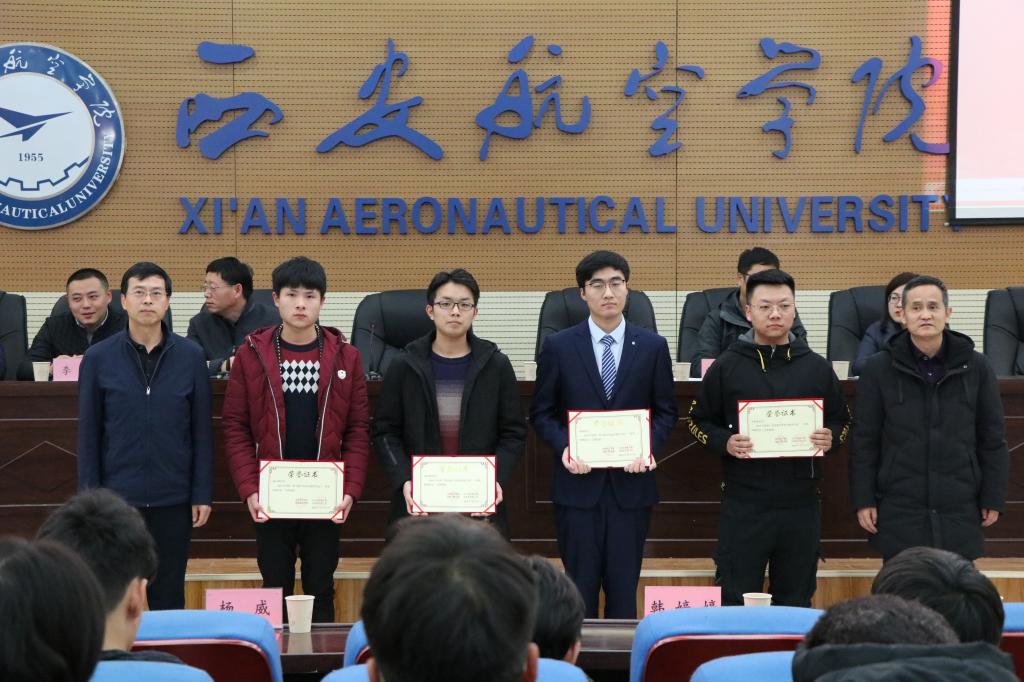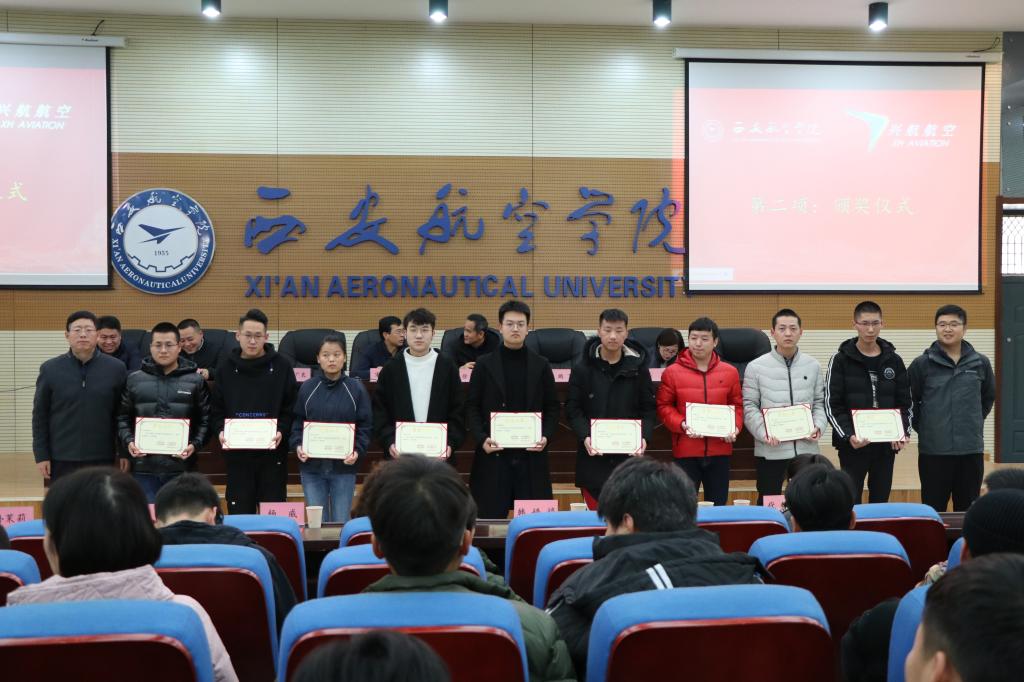 12月6日下午,西安兴航航空科技股份有限公司-beat365英国官网网站校外实习基地揭牌暨兴航奖学金颁奖仪式在阎良校区举行。西安兴航航空科技股份有限公司总经理徐竑、董事会秘书曹鹏飞、航空基地社会事业局高级主管王莎、航空基地人才中心人才服务主管代钵钵,beat365副校长宋文学,机械工程学院、学生工作部(处)、教务处负责人及师生代表参加了活动。