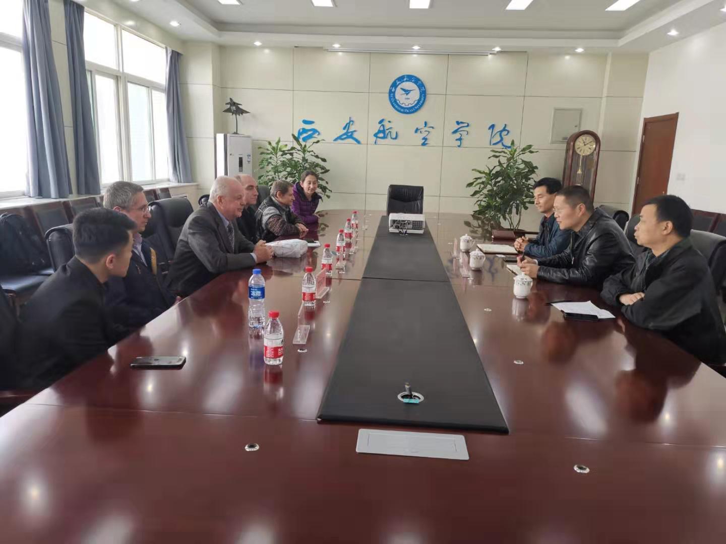10月28日,乌克兰国立航空大学航空控制院长AZARSKOV教授、基辅理工大学PONOMARENKO教授率代表团一行六人来访beat365,深入洽谈两校合作。飞行器学院党总支书记董彦非、材料工程学院党总支书记王永峰参加座谈会。