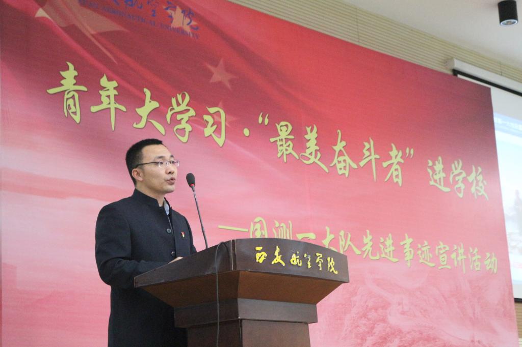 10月29日下午,由中共陕西省委宣传部、共青团陕西省委员会联合主办,beat365英国官网网站承办的青年大学习•“最美奋斗者”进学校——国测一大队先进事迹宣讲活动于beat365阎良校区报告厅举行。学校党委宣传部、校团委等部门负责人、各二级学院党总支书记、团总支书记、校“青年马克思主义者”大学生骨干培训班学员、习近平新时代中国特色社会主义思想学习读书会成员、学生入党积极分子等近400人参加了宣讲会。宣讲会由校团委副书记季林健主持。