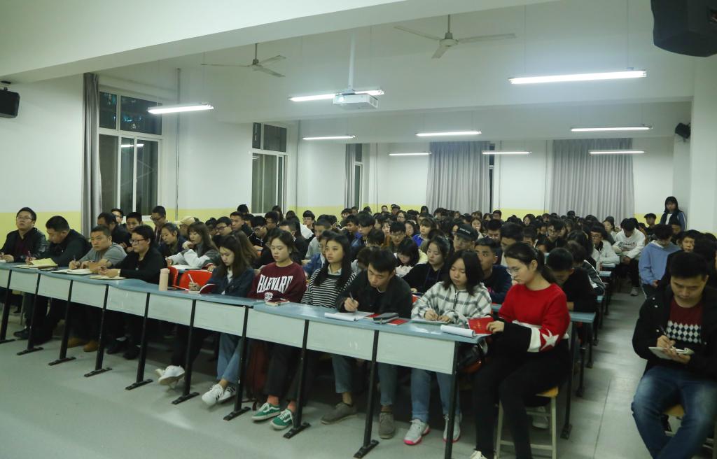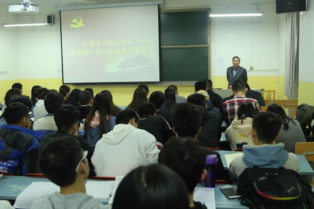 为推进“不忘初心、牢记使命”主题教育深入开展,教育引导青年学子认真学习党章党史、坚定理想信念,10月21日晚,党委书记陈平社在沣惠校区以“认真学习践行党章,努力做一名合格的共产党员”为题,为180余名入党积极分子上讲授一堂精彩的党课。