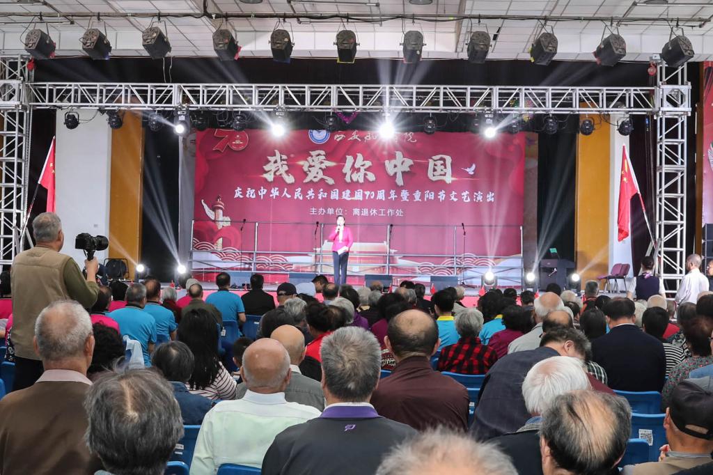 金秋时节,举国欢庆。9月24日,学校举办“我爱你中国”庆祝新中国成立70周年暨欢度重阳节文艺演出活动。学校离退休职工欢聚一堂,喜迎佳节。校领导陈平社、谭少敏、宁永录、周建华、张同怀,党政机关有关负责同志出席活动。活动由党委副书记谭少敏主持。