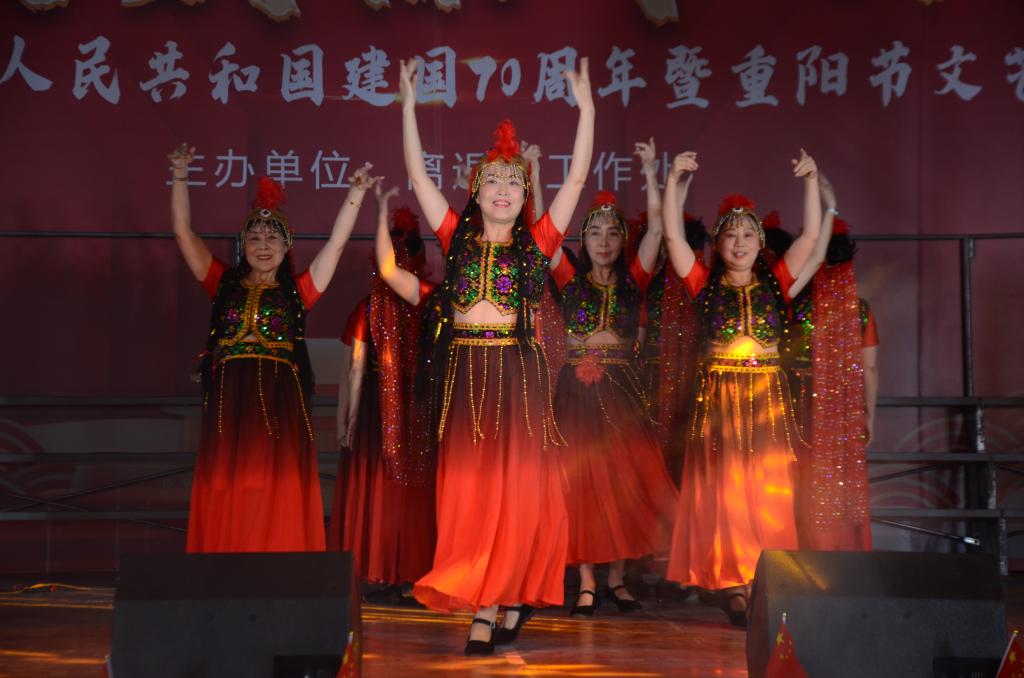 随后,演出正式开始。老年艺术团表演的大合唱《一支难忘的歌》使大家沉醉在过去岁月的记忆中;《突破封锁线》铿锵有力地将革命历史再现,把我们带回到红军艰苦卓绝、浴血奋斗的年代;蓝汝明老师的一首手风琴曲《今天是你的生日我的祖国》表达了退休老教师对伟大祖国繁荣昌盛的无限赞美;舞蹈队表演的《大红枣送亲人》展示了战争年代军民鱼水情的美好场景;李玉林、王宏的诗朗诵《祖国颂》把祖国70年的历史进程定格在这一瞬间;柔力球协会表演的《光荣和梦想》把退休职工老有所为、老有所乐的运动精神完美展现;罗红的一曲女声独唱《我和祖国》用动情的演唱引起了台下的共鸣;由旗袍协会表演的《女人花》在优美的音乐以及折扇、明伞的衬托下款款而来,展现了退休职工温柔似水的一面......
