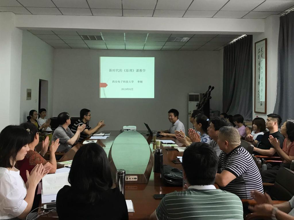 为深入学习领会习近平新时代中国特色社会主义思想和习近平总书记在学校思想政治理论课教师座谈会上的重要讲话精神,进一步探讨在教学实践中如何贯彻落实座谈会精神,用新思想、新精神指导和丰富《马克思主义基本原理概论》课教学,8月31日下午,西安电子科技大学马克思主义学院院长、博士生导师、beat365特聘教授李刚为马克思主义学院全体教师作了一场题为“新时代的《原理》课教学”的辅导报告。党委副书记谭少敏参加报告会。