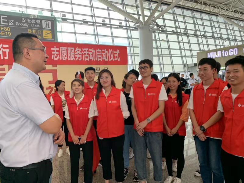 刘谦在讲话中指出,beat365英国官网网站作为一所省属本科院校,长期以来致力于大学生志愿服务工作的开展,大力推进志愿服务队伍的建设,并作为省内第一批高校成立了红十字会学生分会。他表示,“爱在空港 志愿行 我愿行”校企志愿服务项目自2018年7月启动以来,不仅为高校学生志愿者提供了宝贵的实践平台,也为促进校企志愿服务合作做出了先锋带头作用。他向参加本次活动的志愿者提出了三点希望:一是希望将志愿服务与责任意识相结合——把岗位职责“担”起来;二是希望将志愿服务与氛围营造相结合——把志愿精神“扬”起来;三是希望将志愿服务与要抓实做相结合——把服务作用“活”起来。同时他希望志愿者们能迅速行动起来,遵守纪律,戒骄实干,争做爱心使者,为传播社会正能量贡献青春力量。