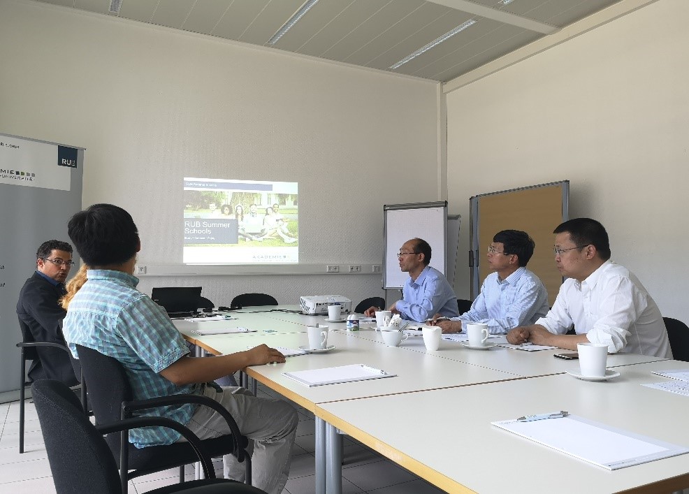 在波鸿大学,宋文学与国际学术交流中心主任Dr.Yves和国际学生负责人Selina女士进行会谈。Dr.Yves主任向代表团一行详细介绍了该校短期国际合作项目“夏季学校”实施情况,参加该项目的外国学生不仅可以学习相关专业知识,还可以通过参观活动了解到鲁尔区如何从煤矿工业转型为新能源、电子为工业主体的过程。代表团对该国际项目表现了浓厚的兴趣,就如何更有效推进beat365师生参与“夏季学校”及联合开展科学研究进行了深入探讨。
