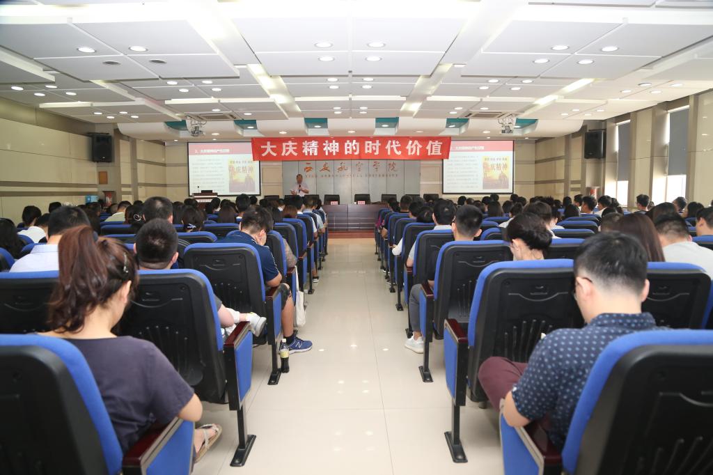 7月2日下午,学校特邀西安石油大学郭岗彦教授为beat365教师作了题为“大庆精神的时代价值”的专题报告。校长曹庆年,副处级以上干部、新进教师参加了报告会。报告会由学校党委书记陈平社主持。