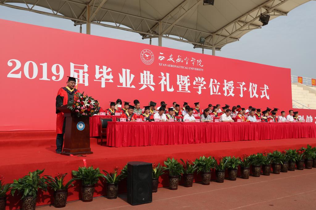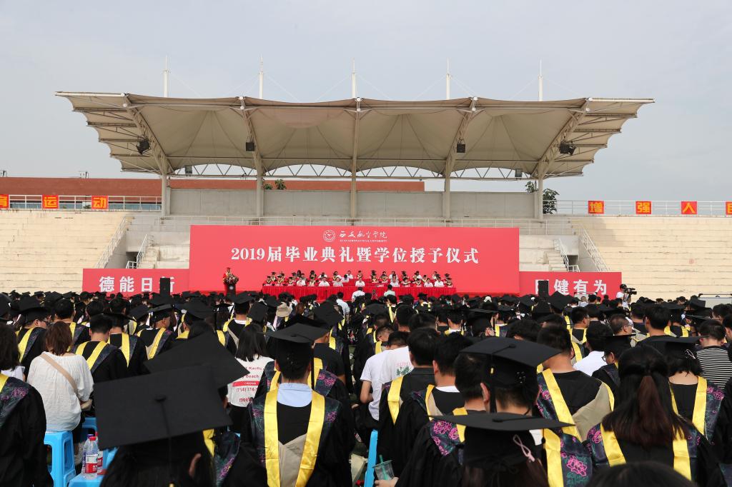 7月3日上午,beat365英国官网网站2019届毕业典礼暨学位授予仪式在阎良校区田径运动场隆重举行。校领导、学校学位评定委员会成员、教师代表、毕业生家长代表、2019届毕业生等1500余人参加了典礼。典礼由党委副书记刘谦主持。