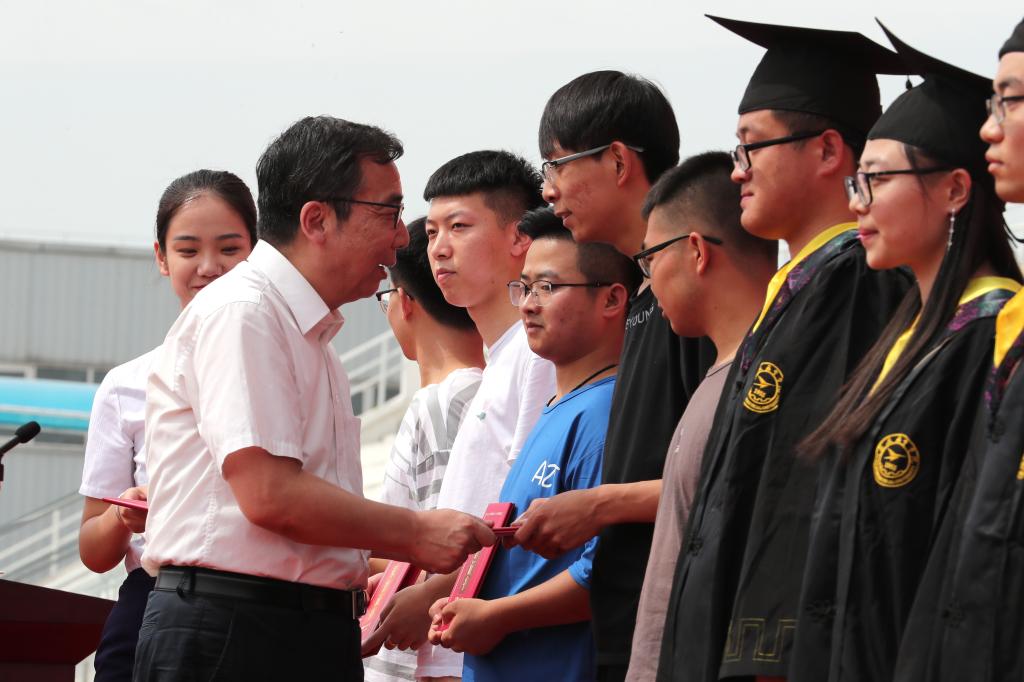 党委书记陈平社为获表彰的优秀毕业生颁发了荣誉证书。