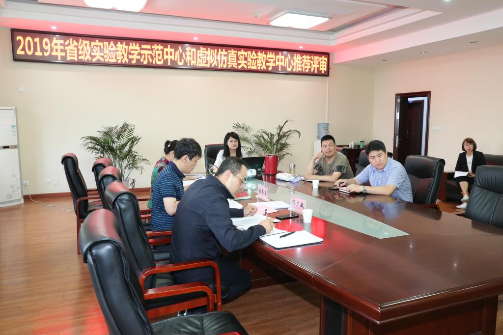 根据省教育厅《关于开展2019年省级实验教学示范中心和虚拟仿真实验教学中心建设工作的通知》文件精神,6月28日上午,教务处邀请校内专家岳忠玉、王晓瑜、杨少斌对二级学院申报的2019年省级实验教学示范中心和虚拟仿真实验教学中心的项目进行了推荐评审。评审会由教务处副处长曹国震主持。