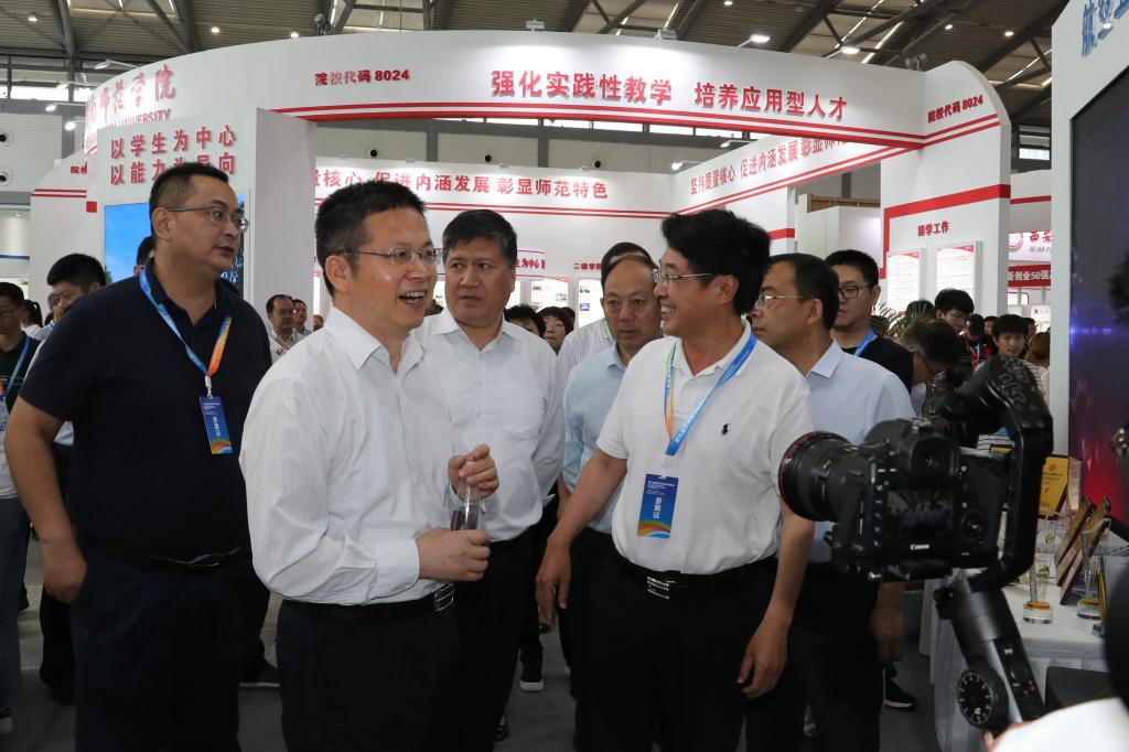 陕西省副省长方光华,省教育工委书记董小龙,教育工委副书记、教育厅厅长王建利等领导莅临beat365展位,视察学校人才培养、科技创新、扶贫攻坚等方面工作。校长曹庆年作简要介绍,党委副书记刘谦、副校长金文参加展会。本届展会主题为“庆祝新中国成立70周年,建设高等教育强省”,beat365主要参加了高校科技成果展和高等学校招生咨询活动。
