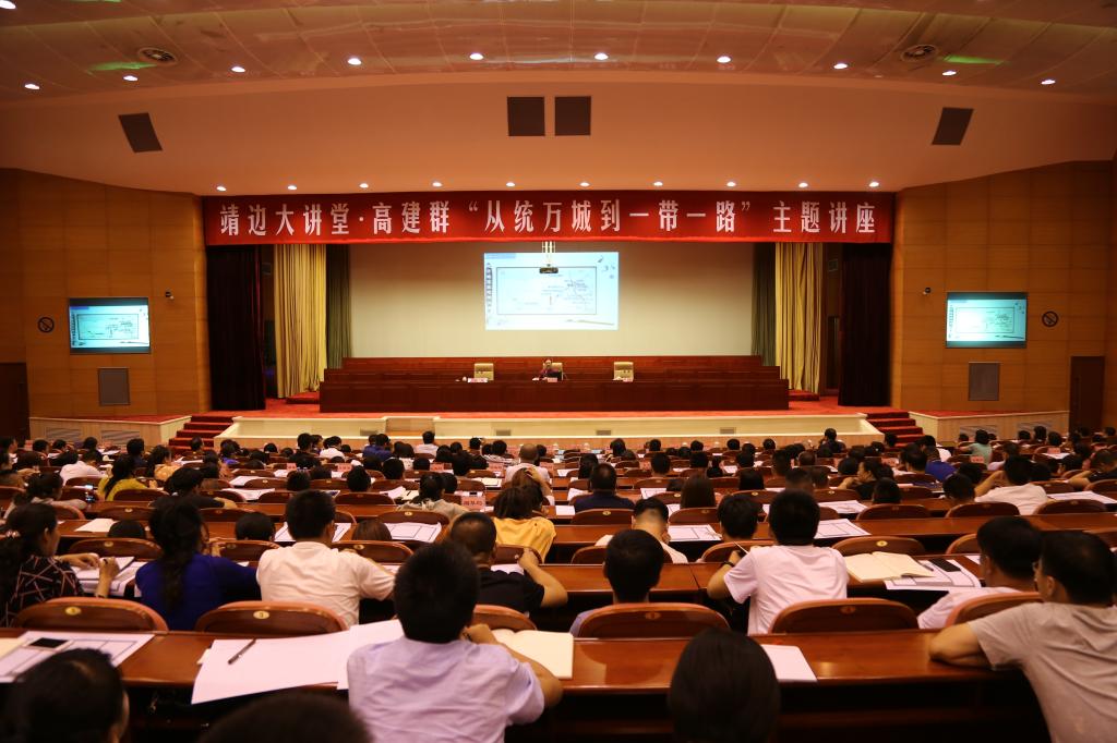 每到一处的讲座,大家都被高建群渊博的知识、充满魅力的讲授所吸引。他妙语连珠、旁征博引、深入浅出,既有渊博的理论深度,又有生动的具体事例,极大的开拓了大家的视野,拓展了大家的思维,听众评论说,这是一场作家的讲座,一场诗人的讲座,一场文化学者的讲座。此次讲座分别在延安大学、延安职业技术学院、延安学习书院、榆林学院、榆林职业技术学院进行,最后在靖边县大讲堂圆满收官。讲座现场反响十分热烈,特别是在交流探讨环节,听众们提出了许多问题,高老师与大家热情互动,答疑解惑,使大家受益匪浅,并和大家就“一带一路”建设的有关内容进行了交流探讨。