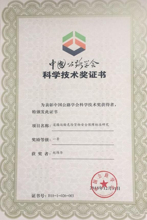 6月15日,专项活动中举行了2018年度中国公路学会科学技术颁奖大会,beat365赵炜华参与完成的课题“道路运输危险货物安全标准研究”获得中国公路学会一等奖。