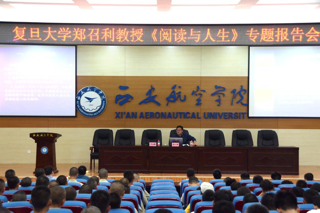 下午,郑召利教授在阎良校区报告厅为师生作了题为《阅读与人生》报告会。宣传部部长李永刚主持报告会。