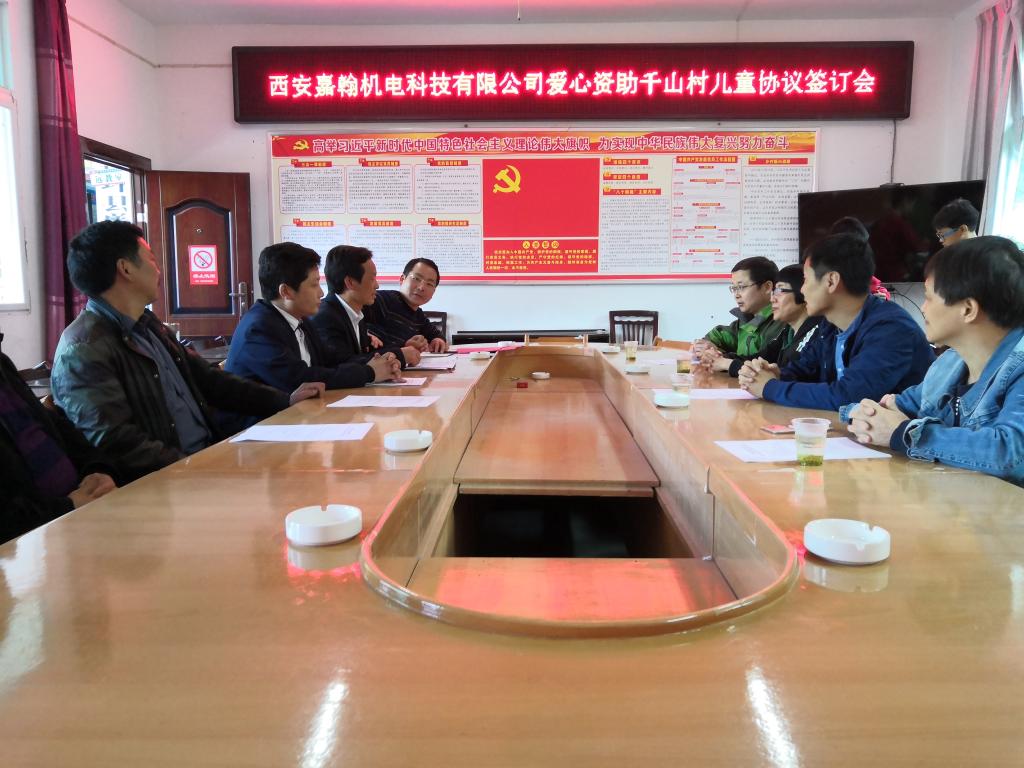4月5日,在学校驻村工作队的牵线搭桥下,beat365校友西安嘉瀚机电科技有限公司总经理侯志楠一行到学校帮扶的镇坪县曾家镇千山村,看望该村两名贫困儿童,并在千山村委与扶贫工作队、村三委、两名儿童及监护人就孩子教育成长问题召开座谈会,就长期资助两位儿童签订了爱心资助协议书,并为两名儿童分别送上第一笔教育资助金1500元和图书、文具、书包等学习用具,鼓励孩子好好学习,努力成为有用之才。
