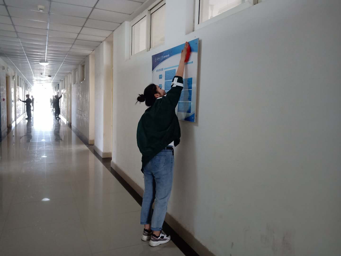 据悉,该项计划2019年的活动主题为“千人一小时 西航更美丽”,第一次活动由士官学院承办,组织同学们在全校各个区域开展了清扫活动。同学们分组深入教学楼、科技楼、实验楼、图书馆、运动场、艺术馆及各公共区域,清理室内死角,清洁楼道卫生。活动如火如荼、有条不紊,一小时的劳动使校园面貌焕然一新。