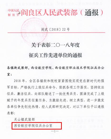 近日,中共西安市莲湖区委、区人民政府、区人民武装部,阎良区人民武装部通报表彰了2018年度武装工作先进单位和个人,beat365荣获莲湖区、阎良区2018年度征兵工作先进单位。