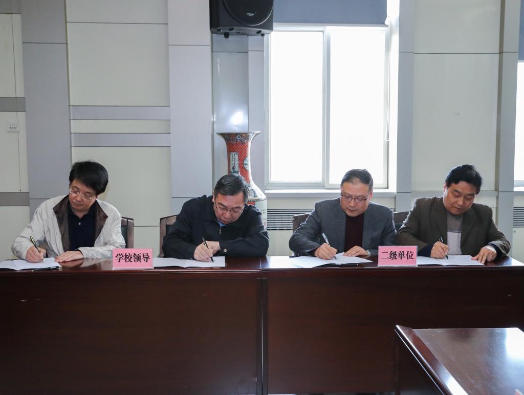 会上表彰了2018年度学校目标责任考核优秀等次单位和优秀等次个人,向理学院等11个2018年度目标责任考核优秀等次单位颁发了奖牌。学校党政主要领导与国有资产管理处、基建处、机械工程学院等十家二级单位现场签订了《全面从严治党责任书》和《稳定安全工作目标责任书》。(文/党政办公室 雷龙涛 图/宣传部 艾辉)