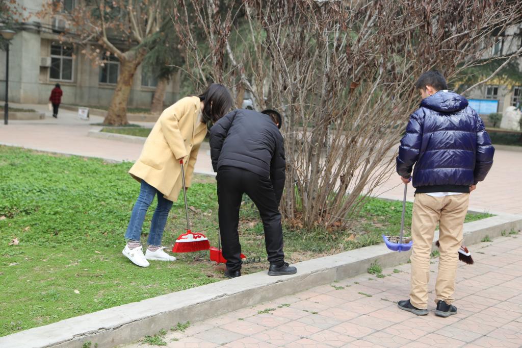 与会师生拿起扫帚、铲子、抹布等劳动工具,对校园绿化带、主干道、墙角、教学楼前后等场所,特别是对校园卫生死角、绿化带等进行了认真清理打扫。