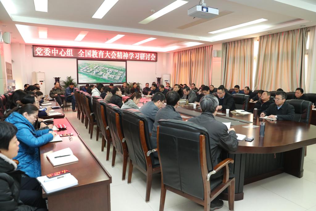 12月12日上午,学校党委中心组学习研讨(扩大)会议在沣惠校区召开,会议围绕贯彻全国教育大会精神、深化办学育人思想、推进学校事业发展进行了交流研讨。学校党委中心组成员、各党总支及直属党支部书记、各院(部)及处室负责人参加了学习研讨会。会议由党委书记陈平社主持。