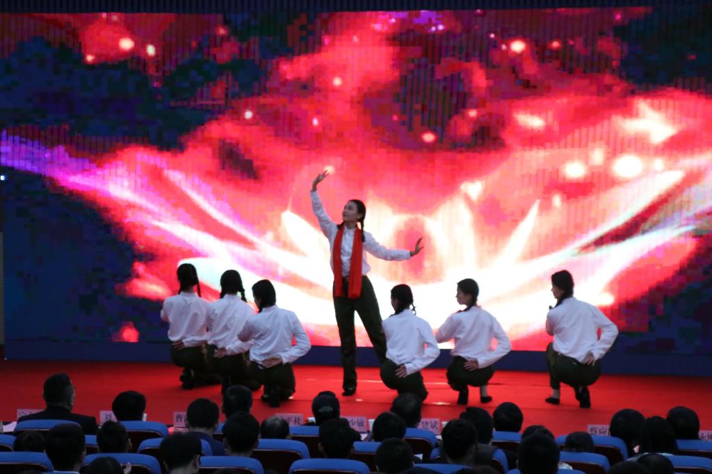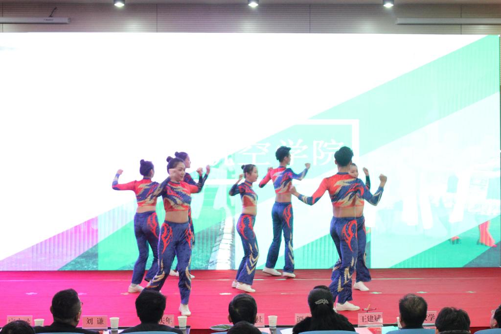 经济管理学院学生为师生表演了《绒花》《我爱这蓝色的海洋》,校健美操队带来了活力四射的《青春飞扬》,优秀辅导员代表朗诵了《不忘育人初心·牢记报国使命》,现场播放了《先进集体·携手共建——先进班集体风采展》《以梦为马·不负韶华——国奖获得者风采展》《情系母校·校友寄语》《齐心协力铸平台·海纳百川荐英才》等励志短片。