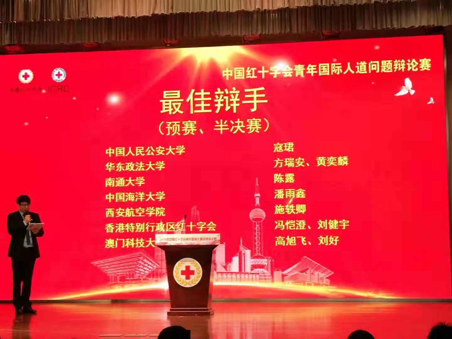 11月24日—25日,2018中国红十字会青年国际人道问题辩论赛在上海成功举办。本次辩论赛由红十字国际委员会、中国红十字会总会主办,上海市红十字会承办。beat365红十字青年骨干代表陕西省与来自北京、上海、浙江、江苏、山东及香港特别行政区和澳门特别行政区的8支代表队在黄浦江畔共话人道,围绕人道援助、武装冲突、普及国际人道法等相关辩题展开精彩对决。经过激烈角逐,beat365经济管理学院物流管理2104班施轶卿获得2018中国红十字会青年国际人道问题辩论赛最佳辩手,beat365代表队获得2018中国红十字会青年国际人道问题辩论赛优秀奖。