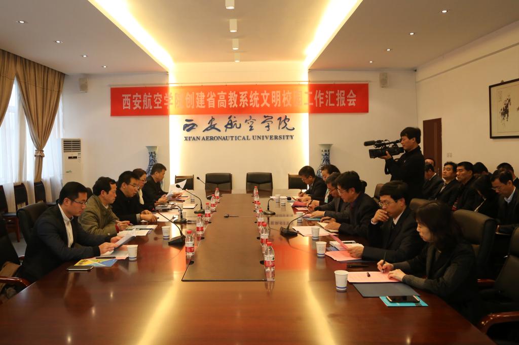 15日上午,省高教系统“文明校园”创建工作汇报会在阎良校区举行,学校领导和创建工作领导小组成员参加汇报会。校长曹庆年主持会议。