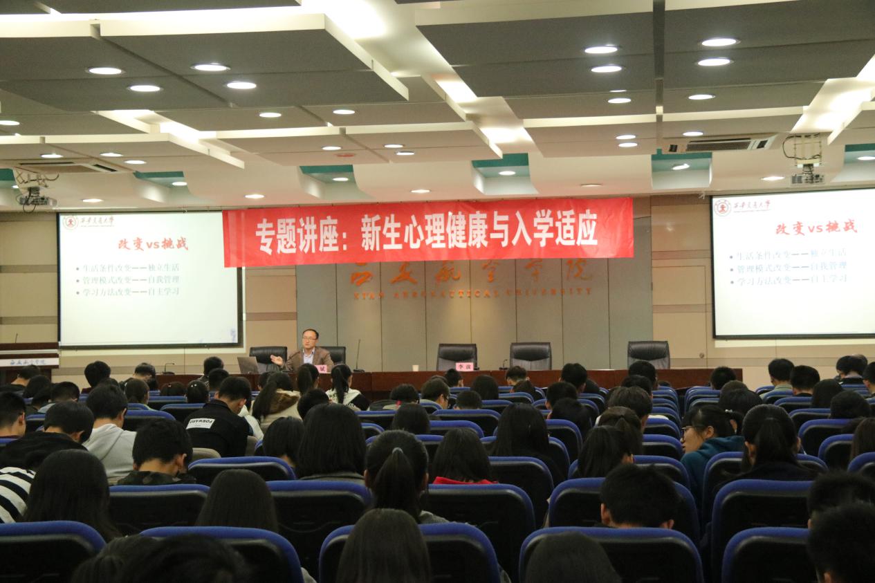 姚斌教授以“新生心理健康与入学适应”为主题,从健康与心理健康内涵出发,分析了大学阶段环境变化、角色转换可能会造成的个体心理危机,概括总结了大学生常见的心理问题,强调了心理健康对个体发展的重要性,从树立目标、培养兴趣、人际关系、自我调节、寻求社会或专业支持等方面就如何应对心理危机向同学们提出了宝贵建议,呼吁同学们学会积极改变自我,迎接新的挑战。