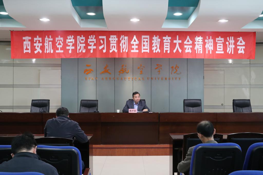 11月2日,学校在沣惠校区举办学习贯彻全国教育大会精神宣讲会,党委书记陈平社为全校处科级干部和师生代表宣讲解读全国教育大会精神。宣讲会由党委宣传部部长李永刚主持。