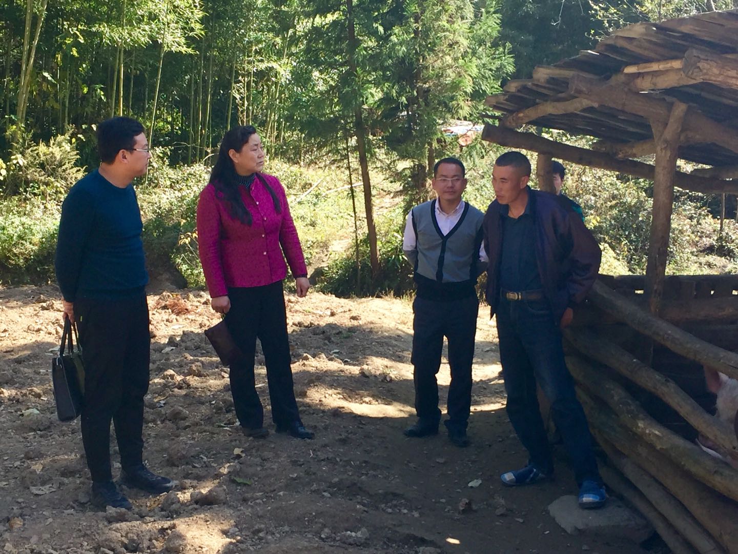 谭少敏一行随后与扶贫工作队一起深入农户家中,走访慰问了学校帮扶的贫困户,并将米、油等慰问品送到贫困户家中。在走访慰问时,谭少敏不仅查看了今年危房改造贫困户的房屋建设情况,还步行近1小时的山路到住在山中、需易地搬迁的贫困户家中,询问搬迁的进展,亲切询问家中老人身体近况,查看了贫困户家中散养鸡圈、猪圈等产业发展状况,在鼓励贫困户继续努力做大做强养殖产业的同时,关心他们在当下产业发展中遇到的困难与难题。