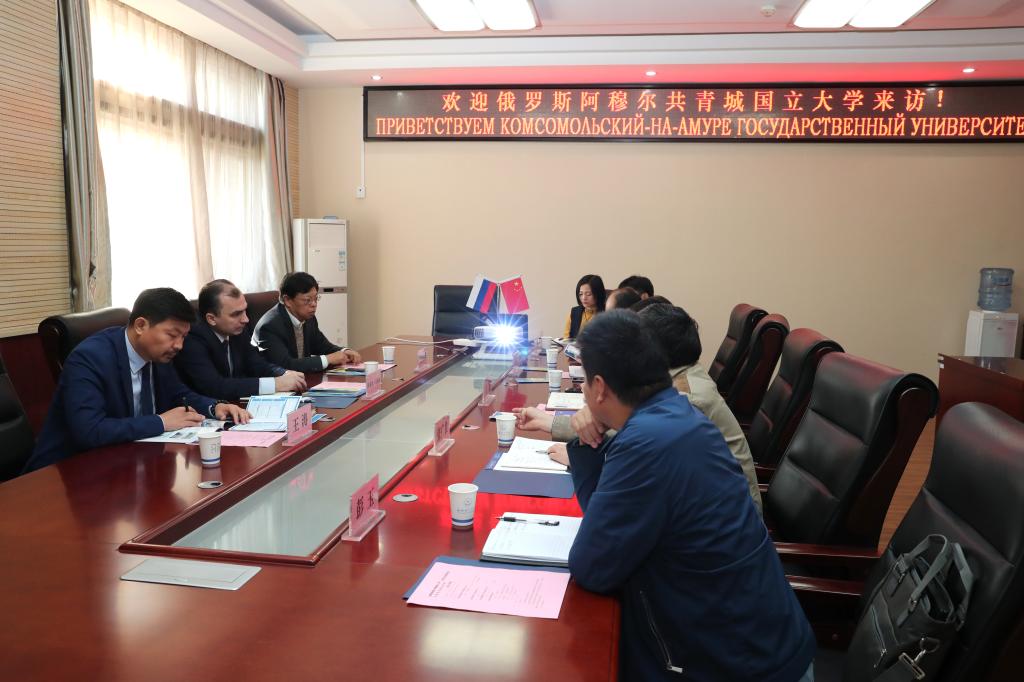伊戈尔·马顾林校长介绍了阿穆尔共青城国立技术大学的发展现状和前景,指出阿穆尔共青城国立技术大学不但拥有本、硕、博学历教育,还为共青城飞机制造厂培训专门人才,实践技能培训在全俄独树一帜。他强调,阿穆尔共青城国立技术大学对两校开展合作交流十分重视,希望双方在暑期夏令营项目、交换生、教师进修等方面开展合作,并对飞机制造专业联合培养本科项目表达了合作意愿。