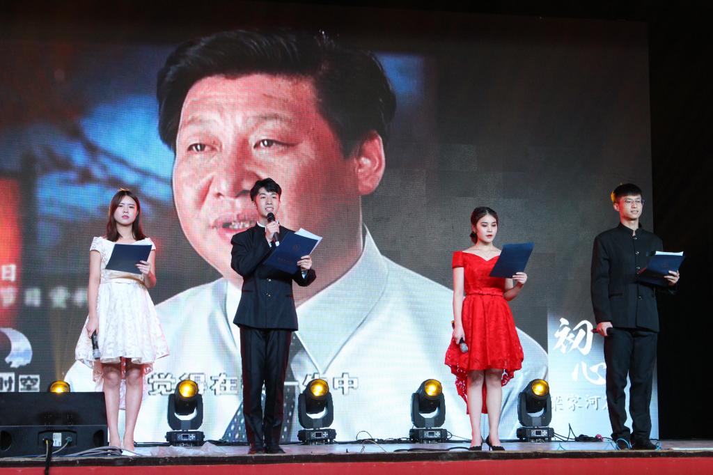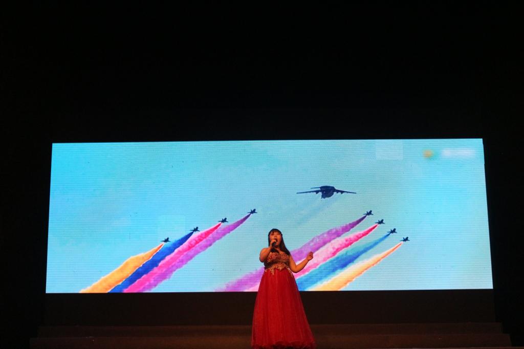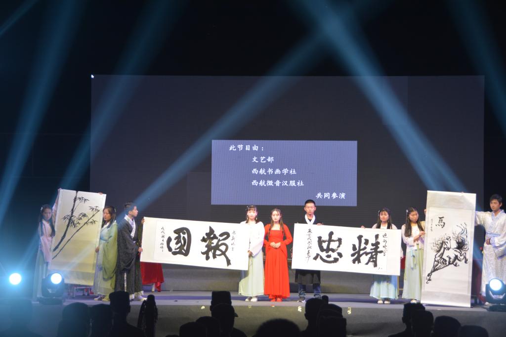 学校特别邀请试飞院技术中心起飞线乐队表演了歌曲弹唱,为晚会的进行营造了热烈的气氛。晚会分为“青春·芳华”和“时代·华章”两个篇章。