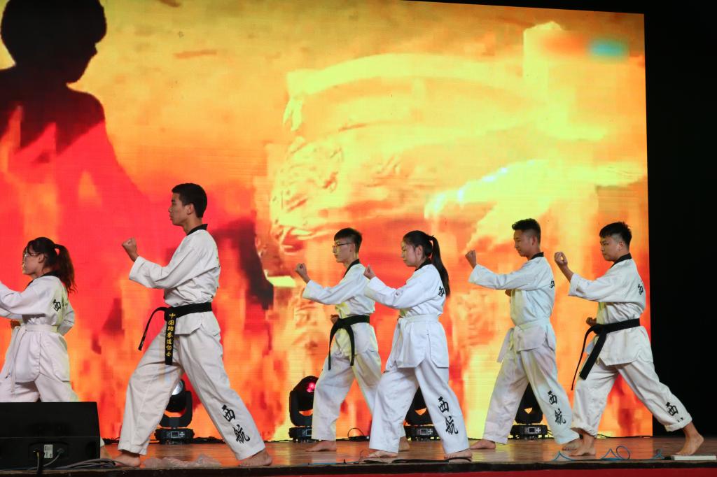 上篇“青春·芳华”中,表演者们用动感的音乐和舞蹈,彰显了当代青年学生的青春与梦想、激情与活力,也进一步号召了beat365青年走下网络、走出寝室、走向操场;健美操节目《青春律动》展示了韵律节奏的美,满溢青春与活力。古筝串烧中,婉转低沉的琴音,回响天际;武术节目《精舞跆风》一招一式尽显体育精神。