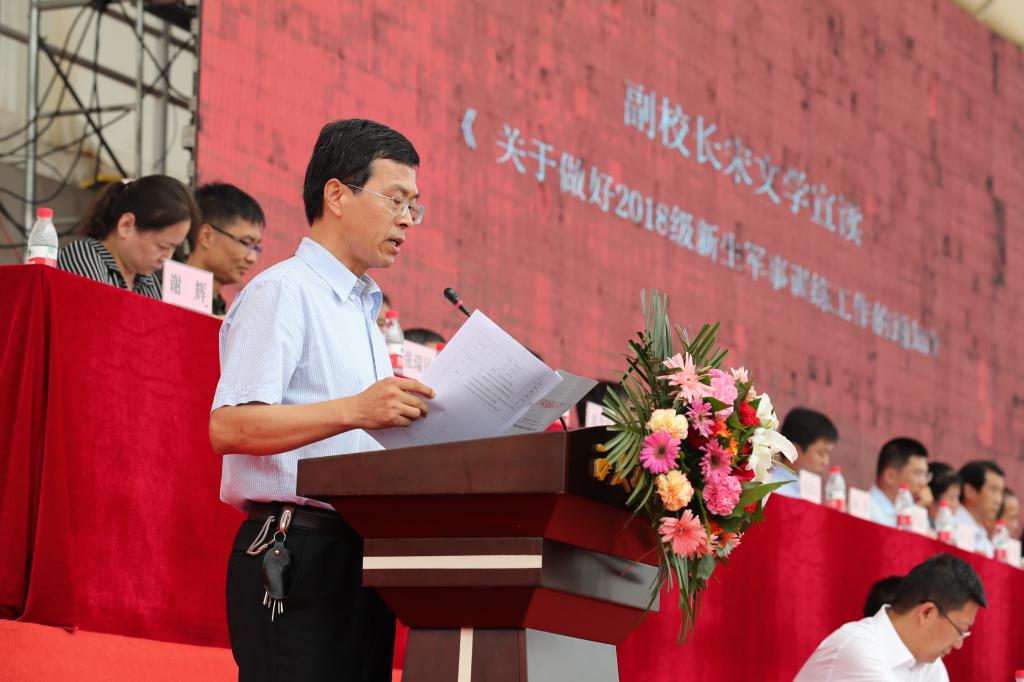 宋文学副校长宣读了《关于做好2018级新生军事训练工作的通知》。