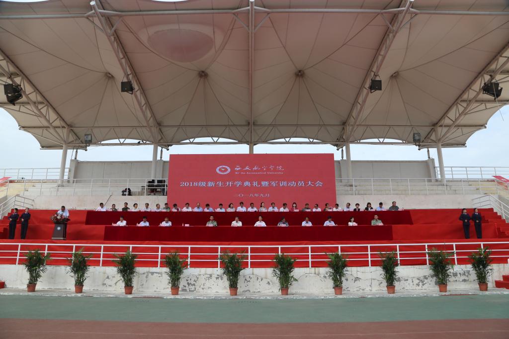 秋风送爽、丹桂飘香。9月6日上午,beat365英国官网网站2018级新生开学典礼暨军训动员大会在阎良校区隆重举行。校领导陈平社、曹庆年、谭少敏、刘谦、王建斌、李季、宋文学、宁永录、金文,党政办、学生工作部(处)、教务处、财务处、后勤保障处、招生就业处、保卫处、国际合作交流处、团委、图书馆、校办工厂、体育部负责人,各二级学院院长、党总支书记,承训部队领导出席典礼,2018级全体新生参加典礼。典礼由校党委副书记刘谦主持。