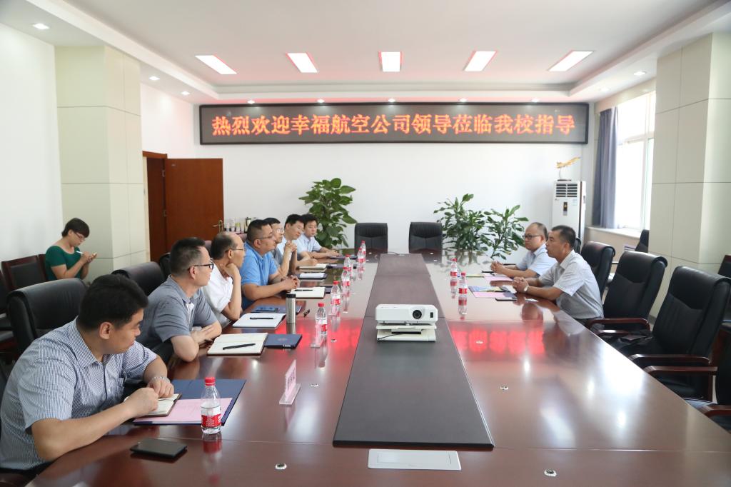 冮亮表示此次来访的主要目的是在8月初宋文学副校长一行对学校和飞行技术专业介绍的基础上,对学校进行深入了解和实地考察。幸福航空立足西安,对飞行员有着较大需求,从学校毕业生在公司的工作表现看,对学校教学质量有信心,因此在飞行员养成生的培养上愿意深入探讨多样化合作方式,开展更广泛地合作。