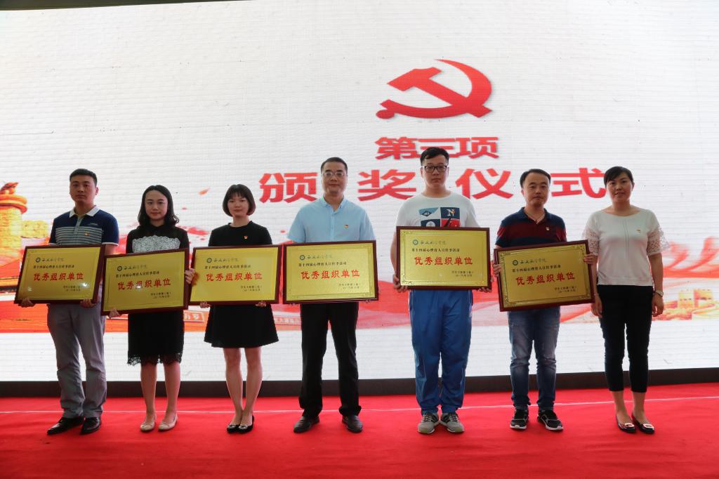 在第十四届心理育人宣传季表彰部分,与会领导及师生观看了宣传季系列活动视频掠影,回顾了启动仪式、荧光夜跑、手语操、心理知识竞赛、心理情景剧大赛等活动的精彩瞬间。学工部部长李波宣读了《关于表彰beat365英国官网网站第十四届心理育人宣传季活动先进集体和先进个人的决定》,王乐瑶等59名同学获“优秀个人”、李江超等17名辅导员获“优秀指导教师”,计算机学院、士官学院、能源与建筑学院、电子工程学院、飞行器学院、机械工程学院获“优秀组织奖”。与会领导分别为获奖集体和个人颁奖。