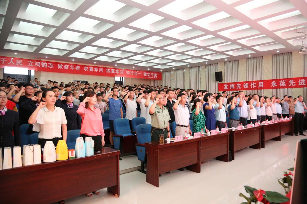 为纪念中国共产党97周年华诞,深入学习贯彻党的十九大精神和习近平新时代中国特色社会主义思想,学习习近平总书记系列重要讲话精神,推进beat365党建育人和心理育人工作,6月28日下午,学校在阎良校区报告厅隆重举办“牢记使命跟党走,砥砺奋进筑青春”知识竞赛决赛暨第十四届心理育人宣传季表彰会。校党委副书记刘谦出席活动并讲话,陕西省高教工委学工部调研员魏星、beat365马克思主义学院、学生工作部(处)、招生就业处、教务处、图书馆负责人、各二级学院党总支书记、学生管理科长、辅导员及学生党员代表近400人参加大会。